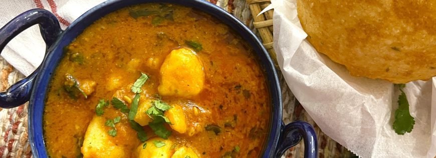 Serve this delicious Hing Aloo Masala hot with steamed rice, chapati, or puri for a comforting meal.